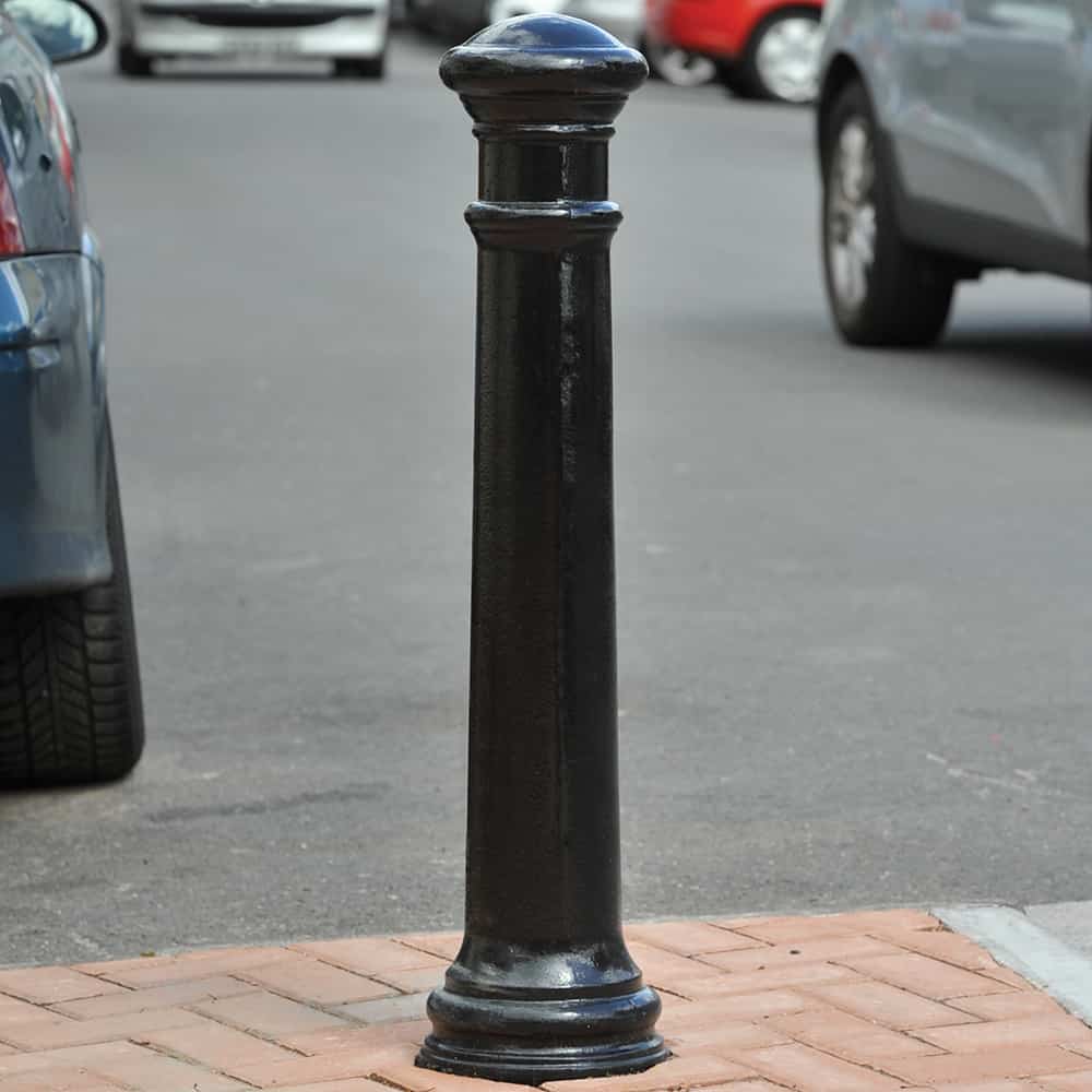 Bollards didn’t make their way to streets and sidewalks until the 18th and 19th centuries, when cities started giving more space to vehicles. Before paved roads and raised curbs, bollards gave protection to pedestrians, first from horse-drawn carts, then from streetcars and trains, then later from motorized cars. These barriers didn’t need the same features as their maritime namesakes, so many were wooden posts or short stones.2