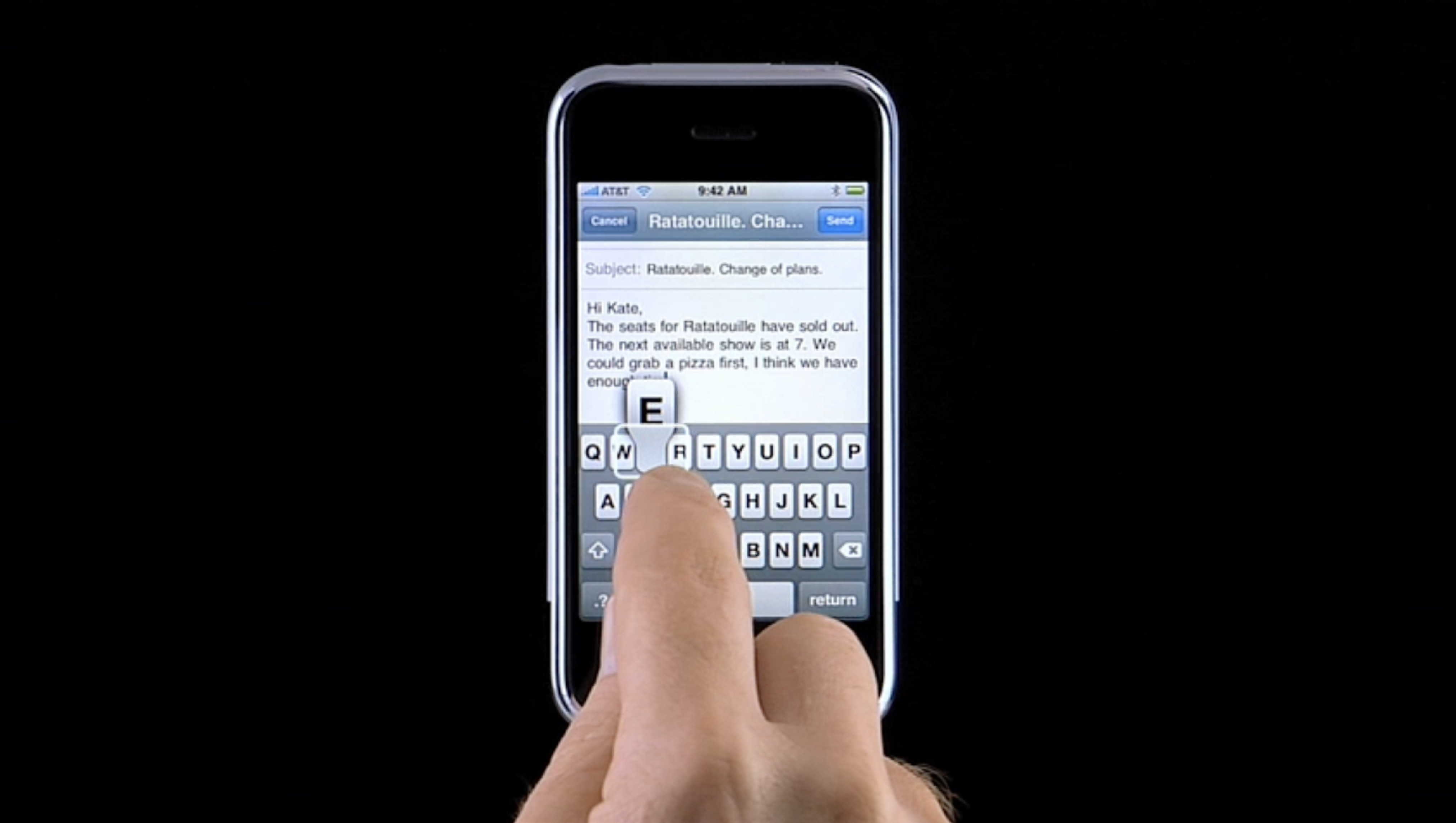 The final design of the keyboard used a familiar QWERTY layout and hid all the complexity of the touch targets and error correction behind the scenes. Image from Apple’s getting started series on the original iphone. Retrieved from the Internet Archive
